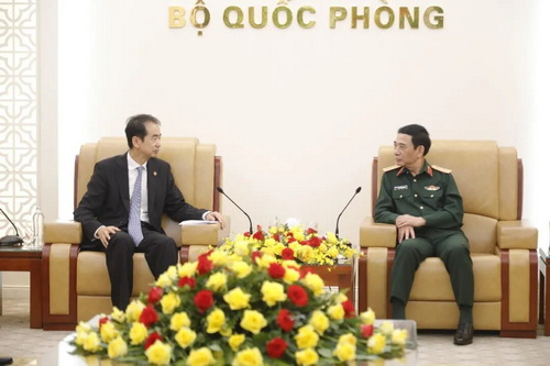 驻越南大使何炜拜会越国防部长潘文江